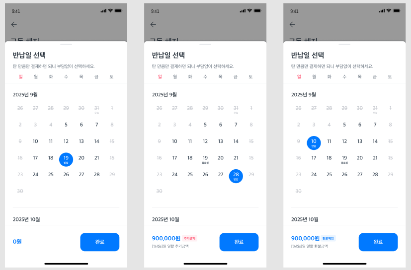 구독형 반납일 선택(첫 달 이후 선택일에 따른 부분 환불 및 추가 과금 진행)
